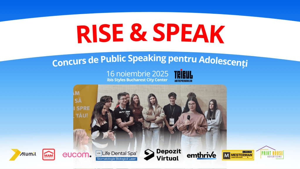 RISE & SPEAK este un eveniment dedicat adolescenților care îndrăznesc să gândească liber și să se facă auziți.